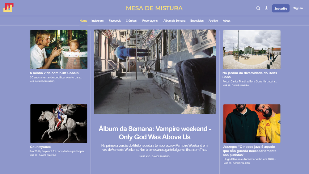 Desenvolvimento de identidade visual para uma página de redes sociais e website português dedicado à música, com foco em notícias, entrevistas, eventos e conteúdo musical em geral.